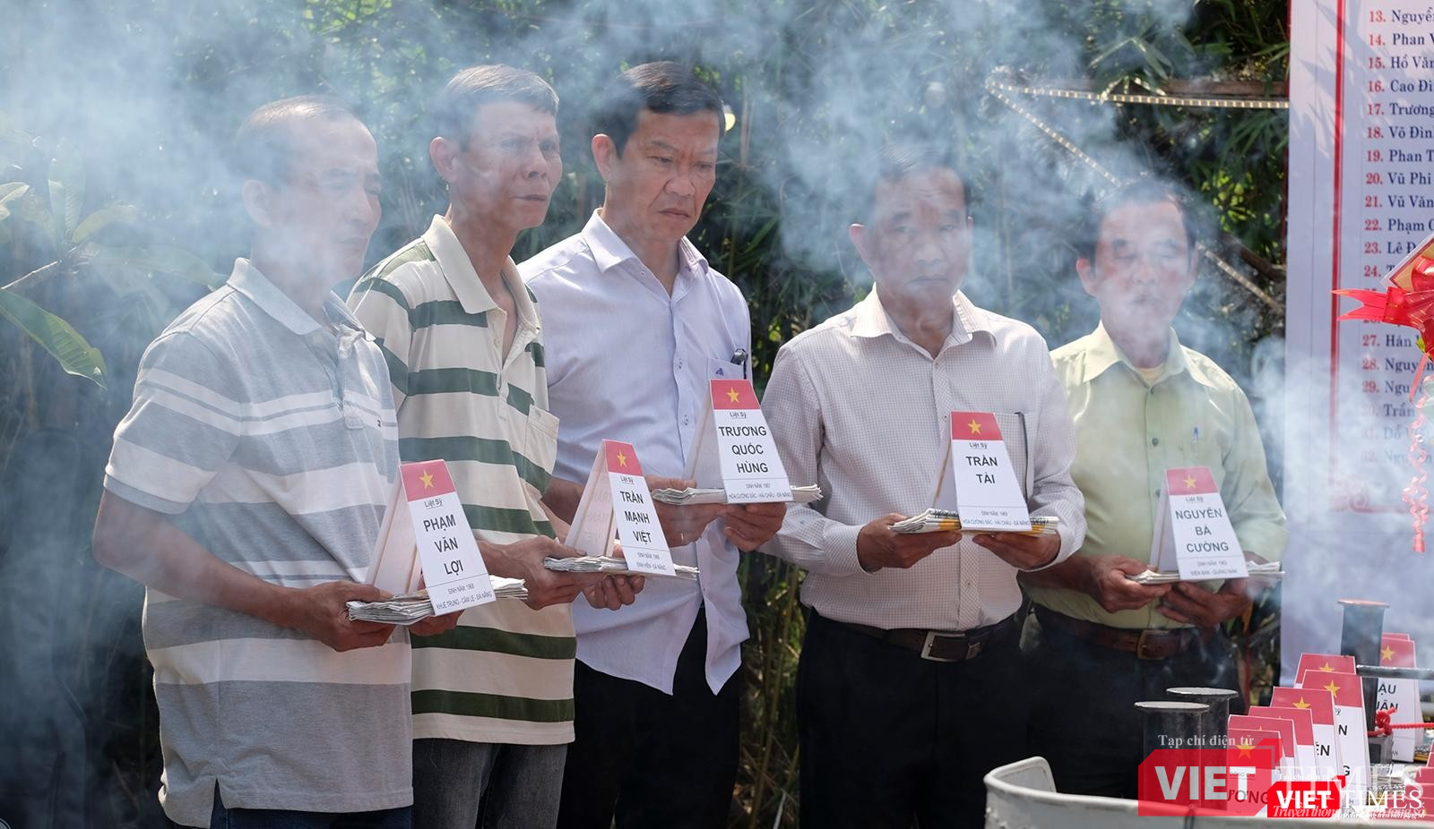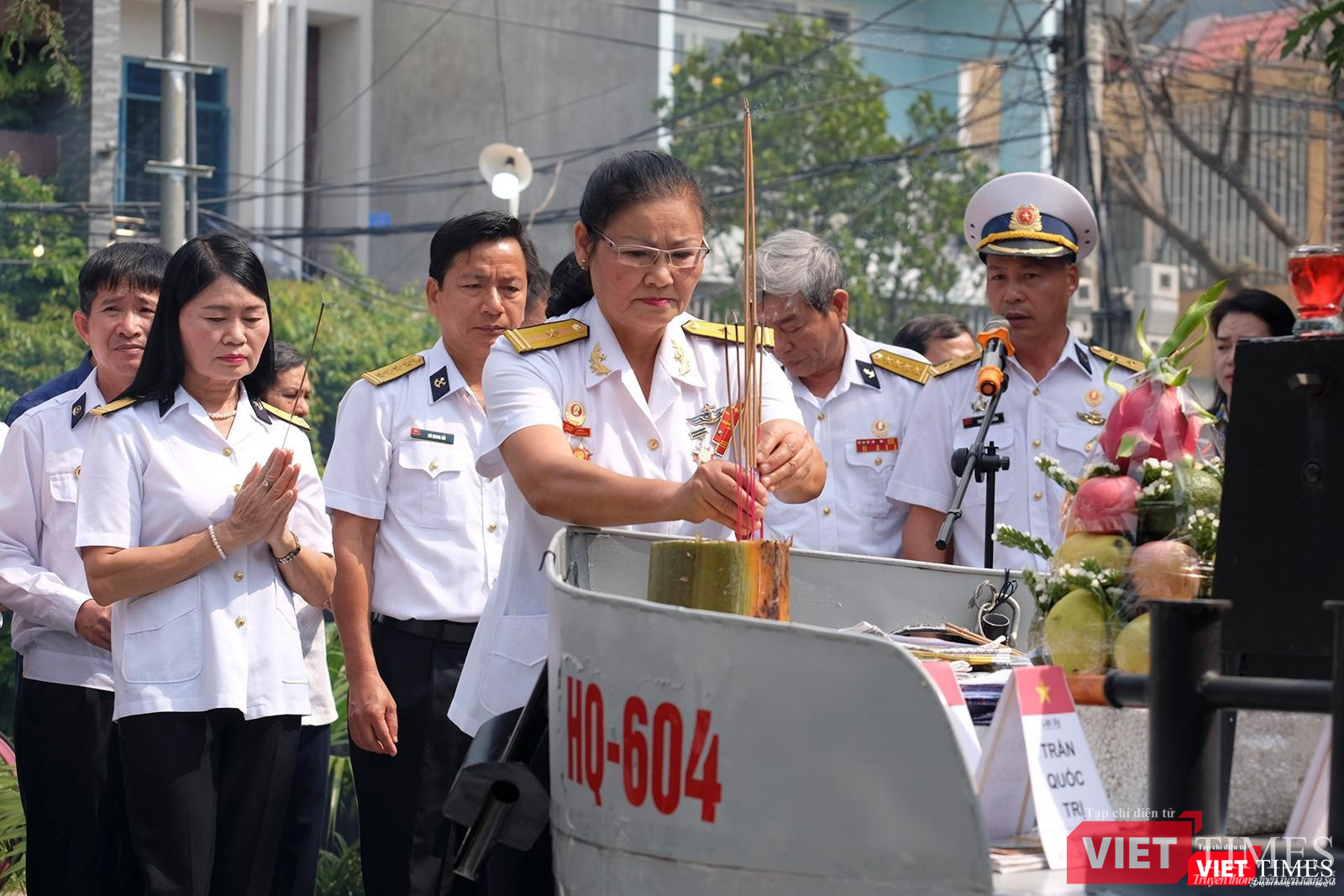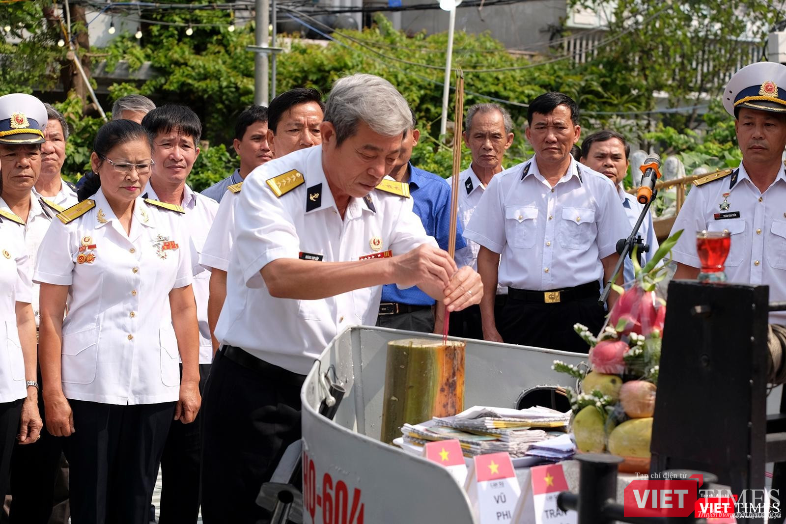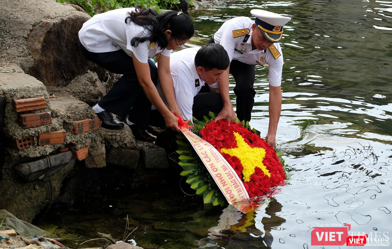Sau lễ tưởng niệm, Đại tá Hoàng Duy Lập - nguyên Chỉ huy trưởng Lữ đoàn công binh 83 (Quân chủng Hải quân) cùng các thành viên cùng dâng hương và dong thuyền hướng ra cửa biển để thả đèn, hoa ngưỡng vọng linh hồn 64 cán bộ chiến sỹ, đồng đội, đồng chí đang nằm lại với mẹ biển bao la.