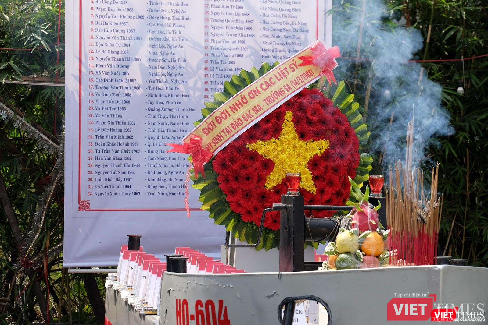 Cùng với mô hình bản đồ Việt Nam, quần đảo Trường Sa, còn có mô hình tàu HQ-604 được tái hiện với bài vị của các chiến sĩ đã hy sinh và vòng hoa hình cờ Tổ quốc. HQ-604 là con tàu đã bị lính Trung Quốc bắn chìm ngày 14/3/1988 khiến 64 chiến sĩ của ta hy sinh.