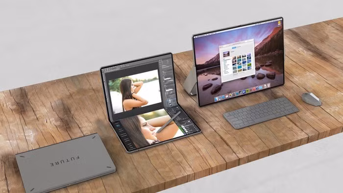 Ảnh dựng mẫu iPad màn hình gập có thể hoạt động như một chiếc laptop . Ảnh: 9to5mac.