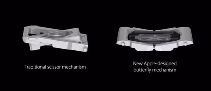Thiết kế phím cắt kéo kiểu cũ (trái) và thiết kế phím bướm của Apple (phải). Ảnh: Techcrunch.