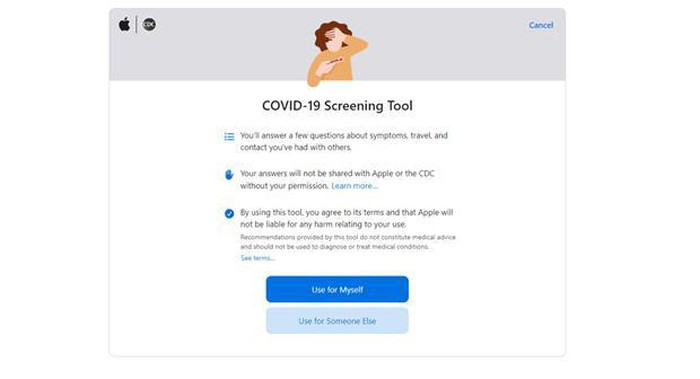 Apple đã phát triển một trang web và ứng dụng mới cung cấp một công cụ sàng lọc các triệu chứng COVID-19 cũng như thông tin cập nhật từ các nguồn đáng tin cậy về sự bùng phát của virus SARS-CoV-2.