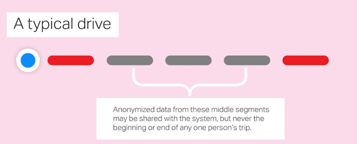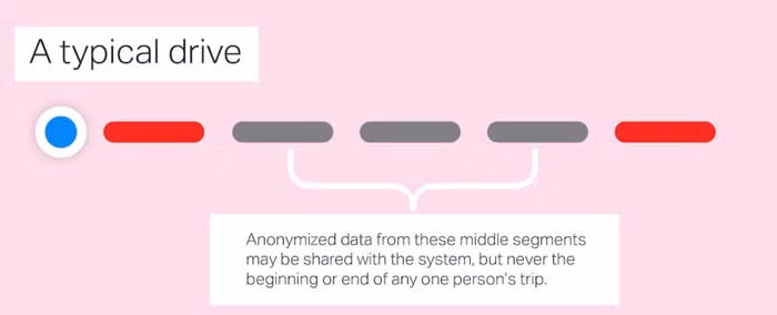 Dữ liệu được nặc danh hóa là dữ liệu về đoạn đường giữa chuyến đi, điểm xuất phát và điểm đến không được chia sẻ với Apple