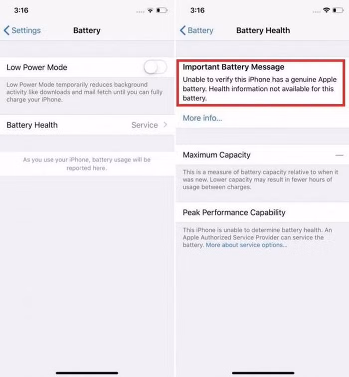 Tất nhiên, thông báo trên không có nghĩa là viên pin không hoạt động. Bạn chỉ không thể xem dung lượng pin thực tế do không thay pin tại các địa điểm do Apple ủy quyền.