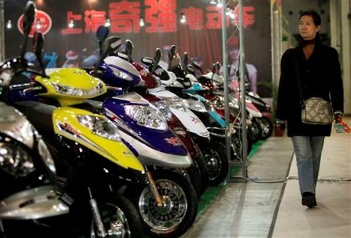 Một dãy xe đạp điện tại Hội chợ xe đạp điện Trung Quốc diễn ra vào tháng 11/2009 ở Thượng Hải