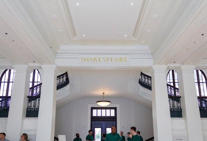 Phòng đọc sách ở khu phía Đông và phía Tây của tầng 1 đã chuyển thành nơi trưng bày sản phẩm phần cứng, phần mềm và dịch vụ của Apple. Khu vực này được thiết kế hòa hợp với phần còn lại của tòa nhà, không tạo ra sự đối lập giữa thư viện cổ kính và khu mua sắm hiện đại.
