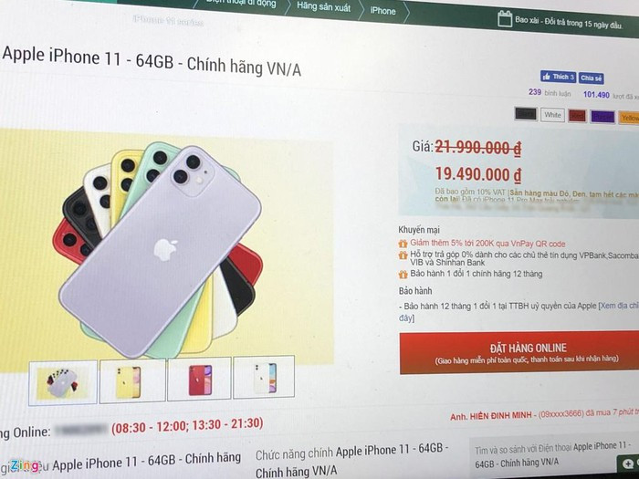 Theo đó, iPhone 11 64 GB hàng chính hãng được chào bán với giá 19,5 triệu đồng. Mức giá này chỉ cao hơn 600.000 đồng so với máy xách tay từ thị trường Mỹ có cùng dung lượng. Phiên bản cao nhất là iPhone 11 Pro Max 512 GB có giá 40,5 triệu đồng, thấp hơn 3,5 triệu đồng so với giá niêm yết.