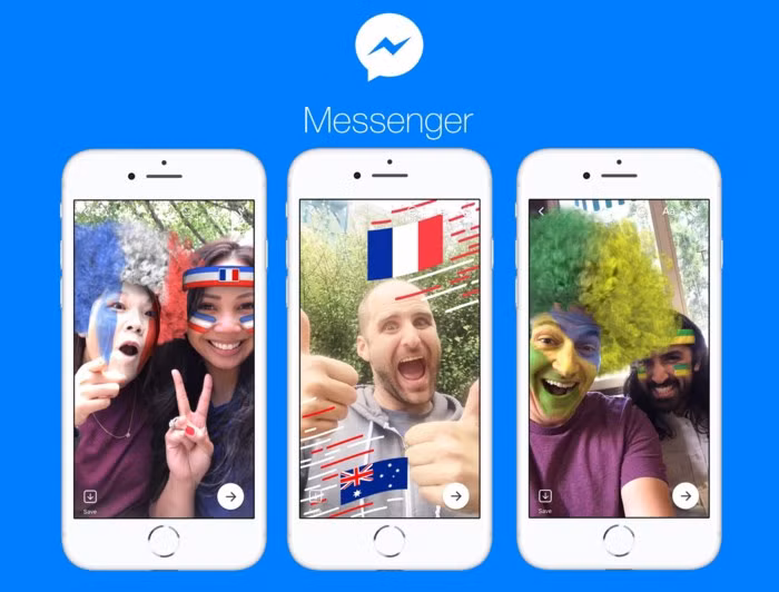 Ứng dụng Facebook Messenger sẽ có bộ lọc camera mới dành cho vẽ mặt và tóc giả cho tất cả các đội tuyển. Hơn nữa, một loạt các trò chơi theo chủ đề bóng đá cũng sẽ có sẵn cho người dùng Messenger.