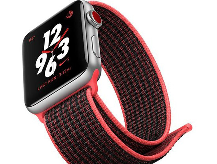 Nếu muốn dây đeo giản dị hơn, bạn có thể chọn mẫu Apple Watch Nike+ Series 3 với dây đeo Nike Sport Band màu đen – than với giá 209 USD, rẻ hơn 110 USD so với giá gốc. Ngoài ra, còn một phiên bản 42mm dùng dây Midnight Fog Nike Sport Loop giá 299 USD.