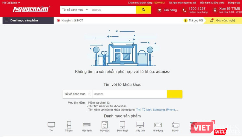 Việc tìm kiếm cụm từ “Asanzo” trên một số trang thương mại điện tử (Adayroi,... ) cũng cho ra kết quả “không tìm thấy sản phẩm” hoặc hiển thị sản phẩm của thương hiệu khác.