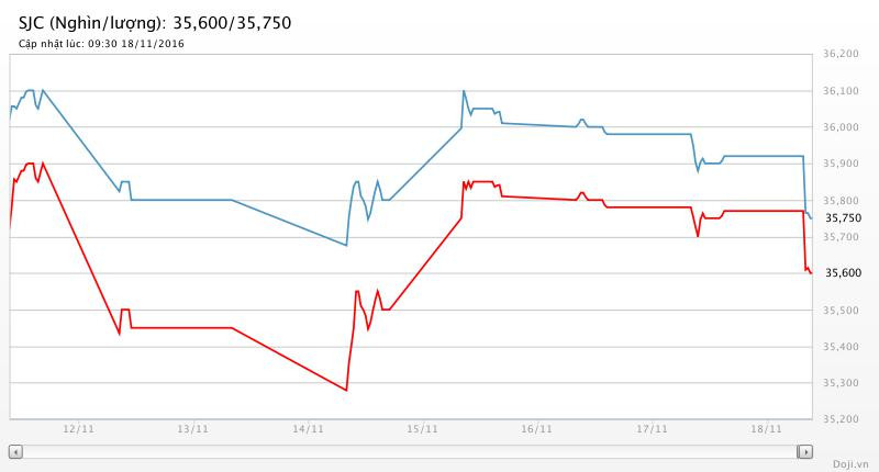Bám sát diễn biến từ thị trường quốc tế, mở cửa phiên giao dịch sáng nay (Thứ Sáu ngày 18/11), giá vàng SJC lập tức trôi sâu.