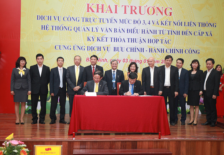 Chiều 03/01/2017, UBND tỉnh Bắc Ninh đã tổ chức khai trương dịch vụ công trực tuyến mức độ 3,4 và kết nối liên thông hệ thống quản lý văn bản điều hành từ tỉnh đến cấp xã, đồng thời tổ chức ký kết Thỏa thuận hợp tác cung ứng dịch vụ bưu chính - hành chính công với Tổng công ty Bưu điện Việt Nam.