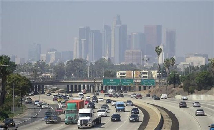 Khói mù ô nhiễm bao phủ bầu trời Los Angeles, California, Mỹ. (Ảnh: AFP/TTXVN)