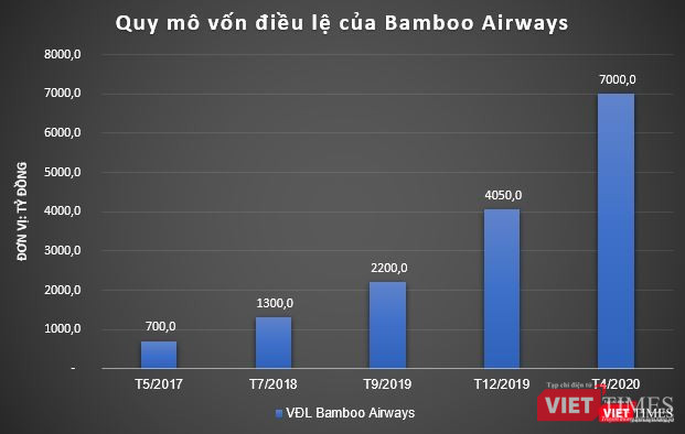 Kể từ khi được thành lập vào năm 2017, hãng hàng không của FLC đã thực hiện nhiều đợt tăng vốn. Trong đó, đợt tăng vốn từ 2.200 tỷ đồng lên 4.050 tỷ đồng của Bamboo Airways vào tháng 10/2019 gây được nhiều sự chú ý hơn cả.