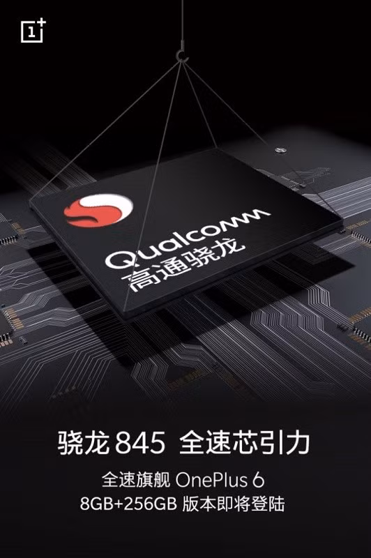 Trong đoạn quảng cáo bởi CEO Pete Lau công bố ngày 4/3, ông đã nói rằng “OnePlus 6 đã sẵn sàng để đáp ứng nhu cầu về hiệu năng mà bạn mong muốn”. Qua nhiều thông tin rò rỉ từ đầu tháng 3 thì khá chắc chắn Snapdragon 845 là “trái tim” của OnePlus 6. Chuyên trang công nghệ Trung Quốc Gizmochina đã công bố một bức ảnh trong chiến dịch quảng cáo của OnePlus, trong đó phiên bản cao cấp nhất của OnePlus 6 sở hữu bộ nhớ RAM lên tới 8GB và bộ nhớ trong 256GB.
