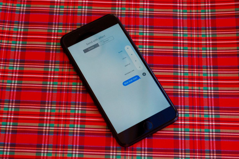 Ứng dụng tin nhắn đã được chỉnh sửa lại với iOS 10. Bạn có thể thêm sticker và GIF cũng như hiệu ứng vào tin nhắn. Có 4 hiệu ứng bong bóng: Slam, Loud, Gentle và Invisible Ink – và 5 hiệu ứng màn hình: Balloons, Confetti, Lasers, Fireworks và Shooting Star. Để dùng chúng, nhập tin nhắn như bình thường nhưng thay vì ấn nút mũi tên màu xanh để gửi, hãy nhấn và giữ nút mũi tên lên.