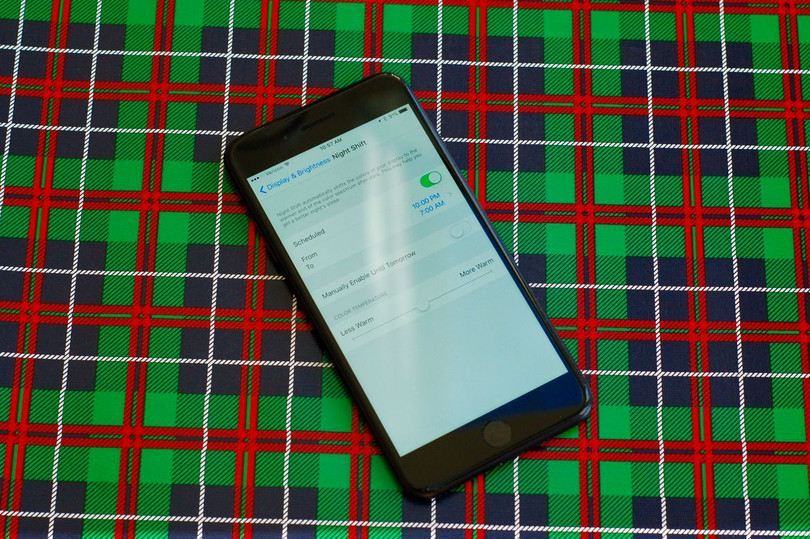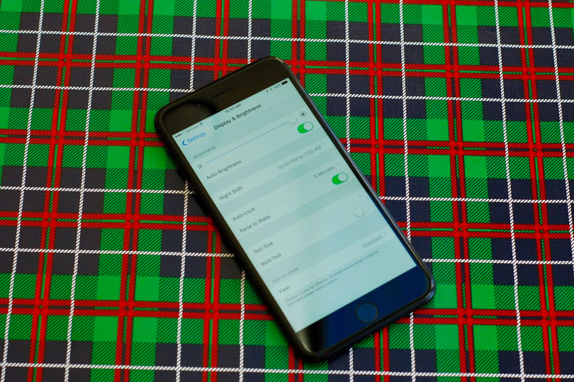 Để chuyển màu nền màn hình sao cho đỡ chói mắt và phù hợp với buổi tối, vào Settings > Display & Brightness > Night Shift. Ở đây bạn cũng có thể lên lịch để máy tự động chuyển sang chế độ này vào buổi tối.