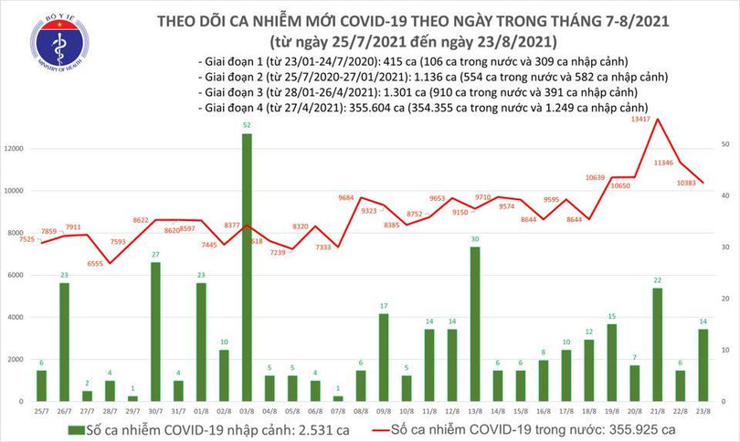 Tổng số ca tử vong do COVID-19 tại Việt Nam tính đến 23/8 là 8.666 ca, chiếm tỷ lệ 2,4% so với tổng số ca mắc và tương đương với tỷ lệ tử vong do COVID-19 trên thế giới.