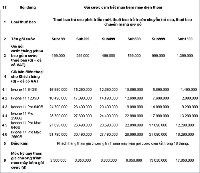 Mức giá bán trên dành cho khách hàng mới chuyển sang thuê bao trả sau cam kết sử dụng gói cước của MobiFone trong 18 tháng ở mức "kịch kim". Mức ký quỹ đối với chu kỳ gói cước này từ 2.300.000 đồng đến 17.850.000 đồng và sau chu kỳ sẽ được hoàn trả lại.