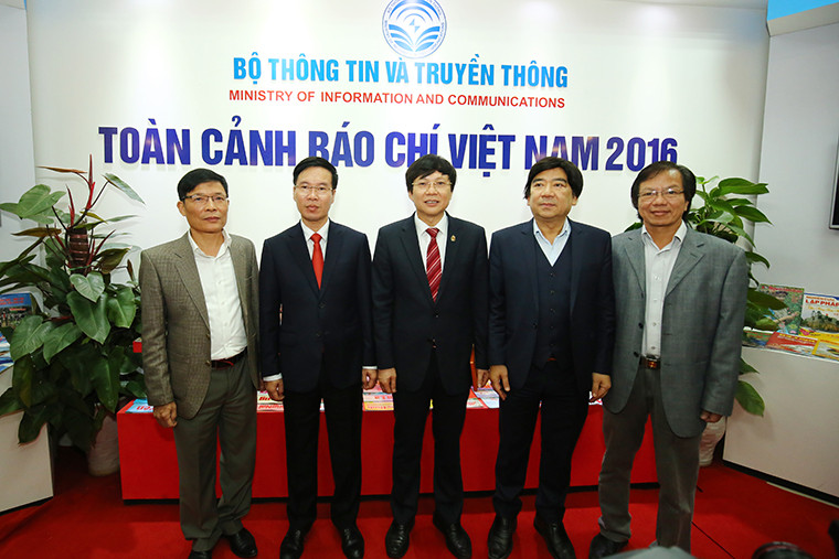 Trưởng Ban Tuyên giáo Trung ương Võ Văn Thưởng tham quan Phòng trưng bày Toàn cảnh báo chí Việt Nam của Bộ TT&TT.