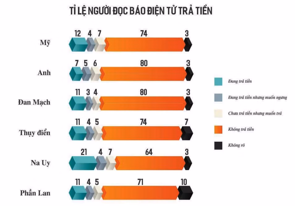Khảo sát các tờ báo lớn trên thế giới hiện nay đang đi theo xu hướng thu phí người đăng ký (subscriber). Thời kỳ đầu, tỷ lệ người đọc báo điện tử trả phí chiếm phần trăm rất nhỏ, có thể doanh thu mang lại là không đáng kể nhưng cho thấy được tiềm năng và sự tăng trưởng. Còn tại Việt Nam, chưa có tờ báo nào làm được việc này, có chăng Việt Nam Plus là tờ báo đầu tiên thực hiện hình thức lập cổng thu tiền người đọc (paywall) đối với các bài báo độc quyền nhưng cũng không đáng kể. Khi tỉ lệ người đọc báo miễn phí vẫn còn cao, có nghĩa là dư địa của báo chí trả tiền vẫn còn rất lớn, là tiềm năng cần được khai thác.