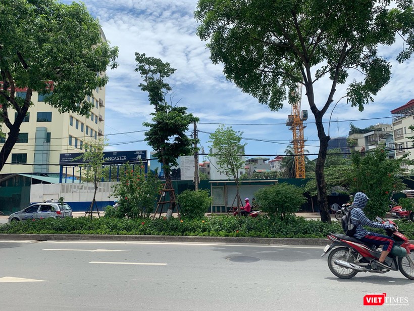 Dù đã có máy cẩu, máy xúc nhưng công trường dự án số 1152 – 1154 đường Láng vẫn không có một bóng công nhân. Chung quanh dự án quây tôn và lối ra vào được đóng cổng im lìm.