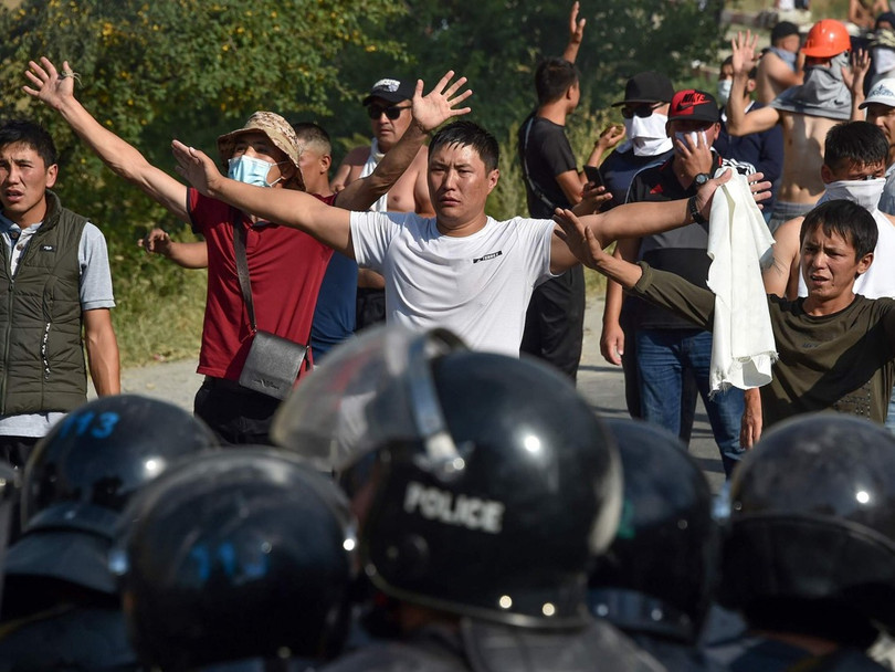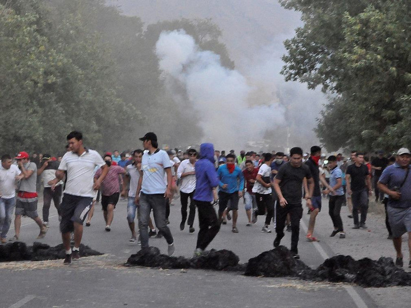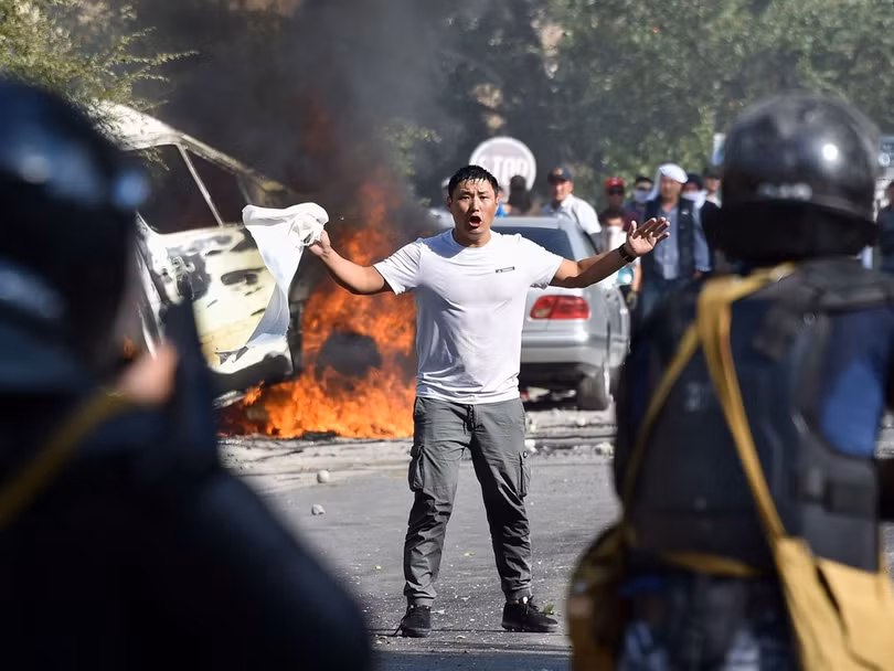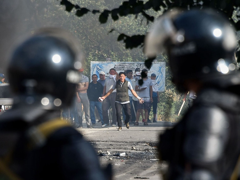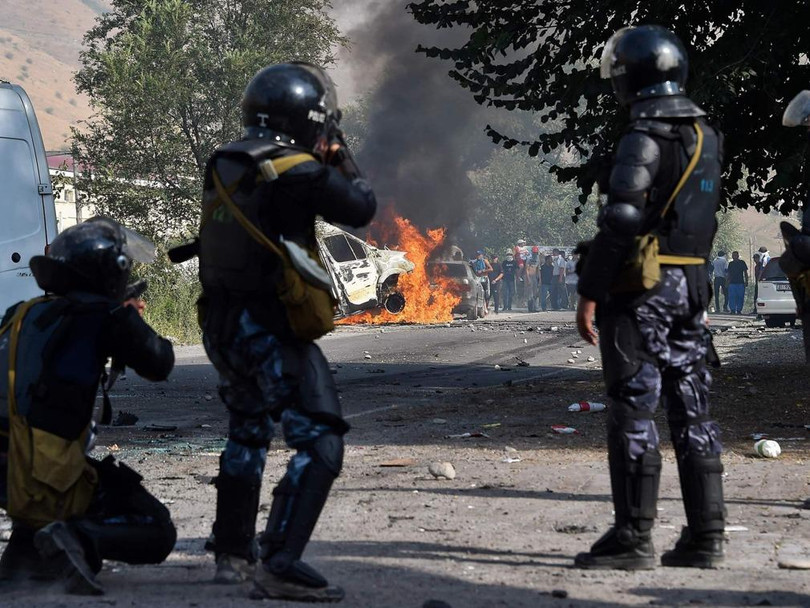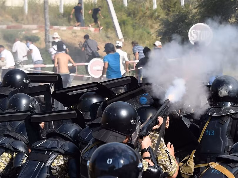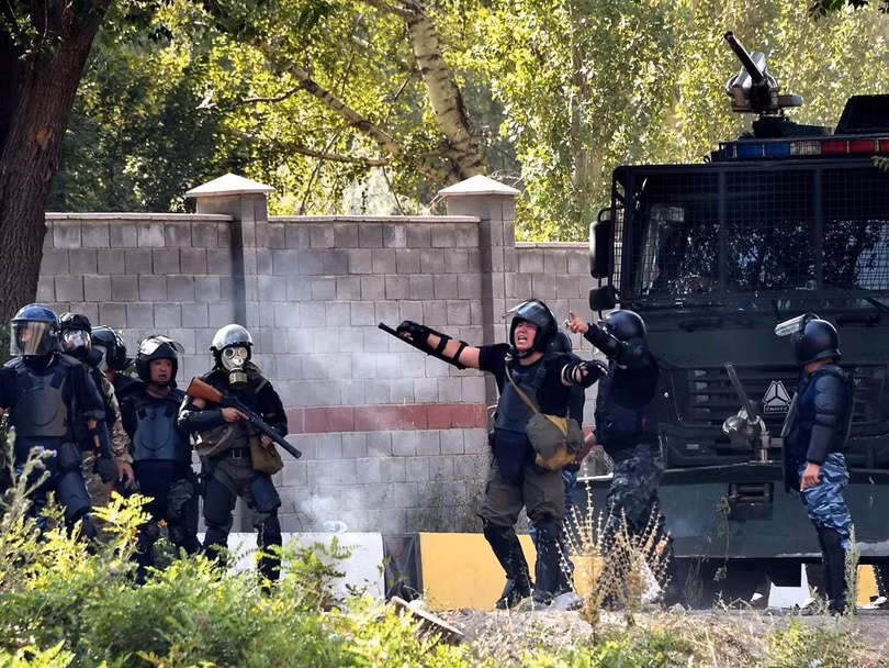 Những người ủng hộ cựu tổng thống Atambayev và nhân viên thực thi pháp luật đã đụng độ nhau. Một thành viên của lực lượng đặc biệt Kyrgyzstan đã nổ súng trong khi bị chặn đường.