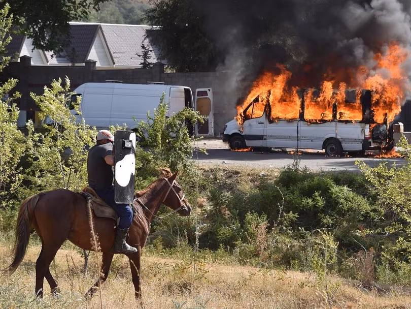 Những người ủng hộ cựu Tổng thống người Ý Atambayev đã đốt cháy một chiếc xe hơi.