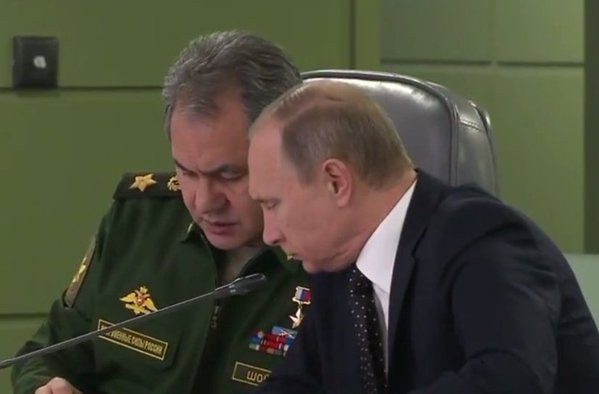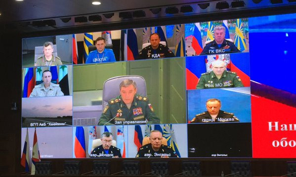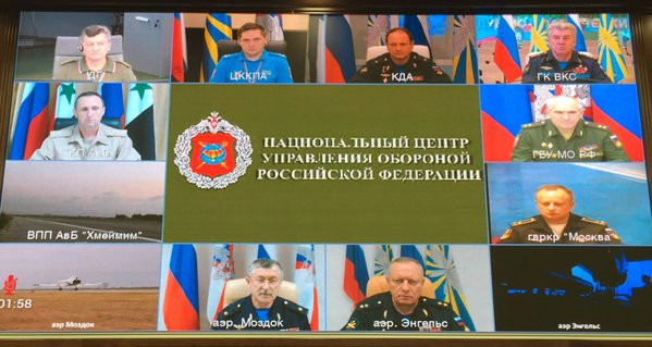 Trong cuộc giao ban trực tuyến với các chỉ huy trưởng của Tổng thống Nga V.Putin. Bộ trưởng Shoigu và tổng tham mưu trưởng Nga Gerasimov báo cáo tổng tư lệnh các lực lượng vũ trang các hoạt động tác chiến trong ngày.