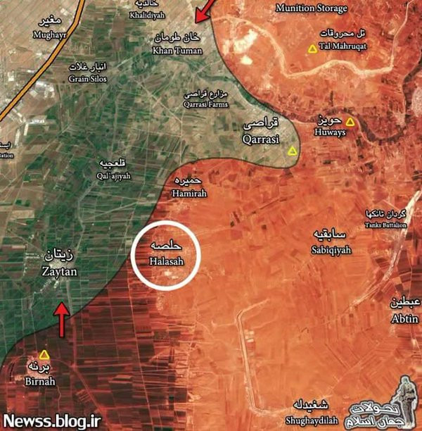 Quân đội Syria đã chiếm lại được khu vực Halas ở miền Nam Aleppo, tạo bàn đạp tiến công thị trấn Eitan từ hai phía.