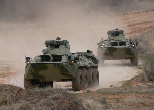 Trong những tình huống triển khai các chiến dịch mặt đất, mối nguy hiểm với các chiến binh cực đoan Hồi giáo là các xe thiết giáp bánh hơi BTR – 82 A. Xe có công suất lớn, được bảo vệ rất tốt, trang bị pháo tự động 30 mm, súng máy đồng trục. Xe thiết giáp bánh hơi BTR-82A có thể cơ động vận chuyển binh sĩ đến mọi điểm trên chiến trường và yểm trợ hỏa lực rất mạnh.