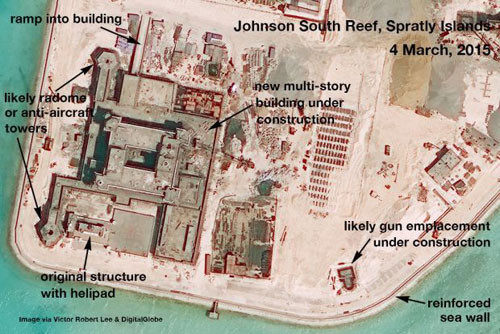 Phân tích hình ảnh vệ tinh Gạc Ma có thể có tháp phòng không, bãi đáp trực thăng...