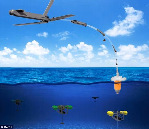 Theo sau, cụm tàu lặn không người lái dưới nước có nhiều loại kỹ năng sẽ lập tức truyền các dữ liệu liên quan cho bộ cảm biến và hệ thống máy tính trên tàu chiến hoặc dưới nước.