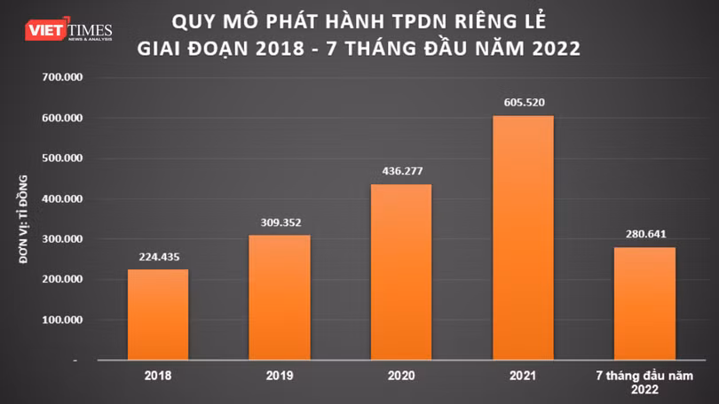 Theo Bộ Tài chính, tổng khối lượng trái phiếu doanh nghiệp (TPDN) phát hành riêng lẻ trong 7 tháng đầu năm 2022 đạt 280.641 tỉ đồng (tương đương cùng kỳ năm trước).