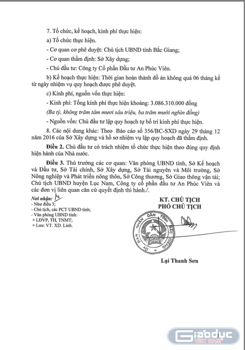 Trước đó, ngày 20/8/2016, Ủy ban nhân dân tỉnh Bắc Giang ban hành Công văn số 3310/UBND-ĐT cho phép Công ty cổ phần đầu tư An Phúc Viên thực hiện dự án đầu tư công viên nghĩa trang An Phúc Viên.