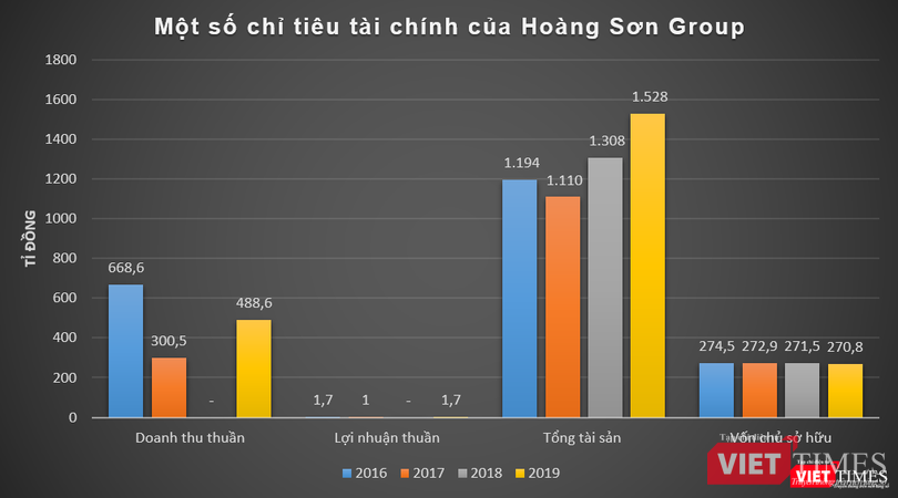 Dữ liệu của VietTimes cho thấy, vài năm gần đây, Hoàng Sơn Group luôn ghi nhận hàng trăm tỉ đồng doanh thu, song tỷ suất sinh lời lại ở mức rất thấp. Như năm 2016 và 2017, doanh nghiệp này ghi nhận doanh thu thuần lần lượt đạt 668,6 tỉ đồng và 300,5 tỉ đồng, lợi nhuận thuần ở mức 1,7 tỉ đồng và 1 tỉ đồng, tương ứng với biên lợi nhuận 0,25% và 0,33%.