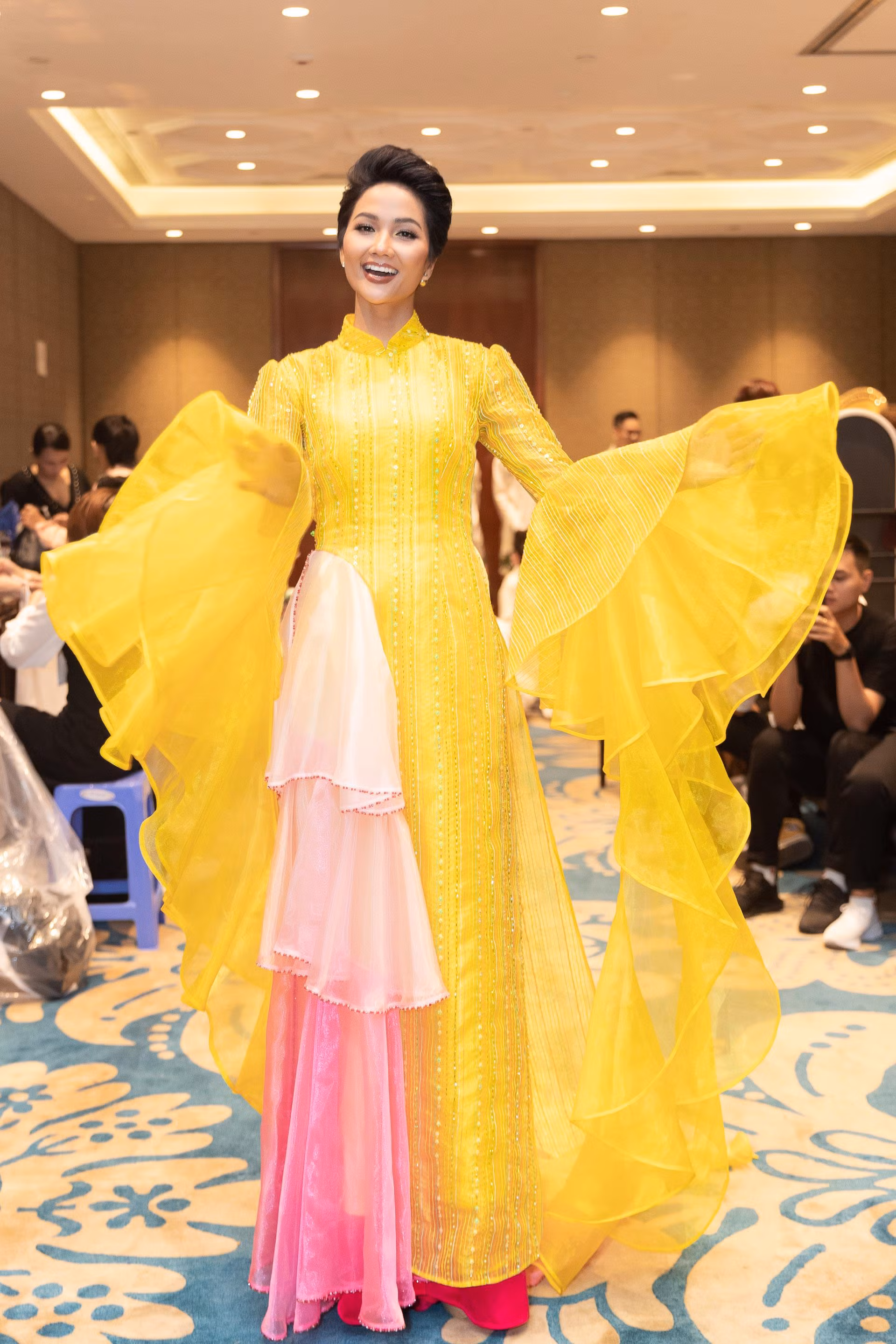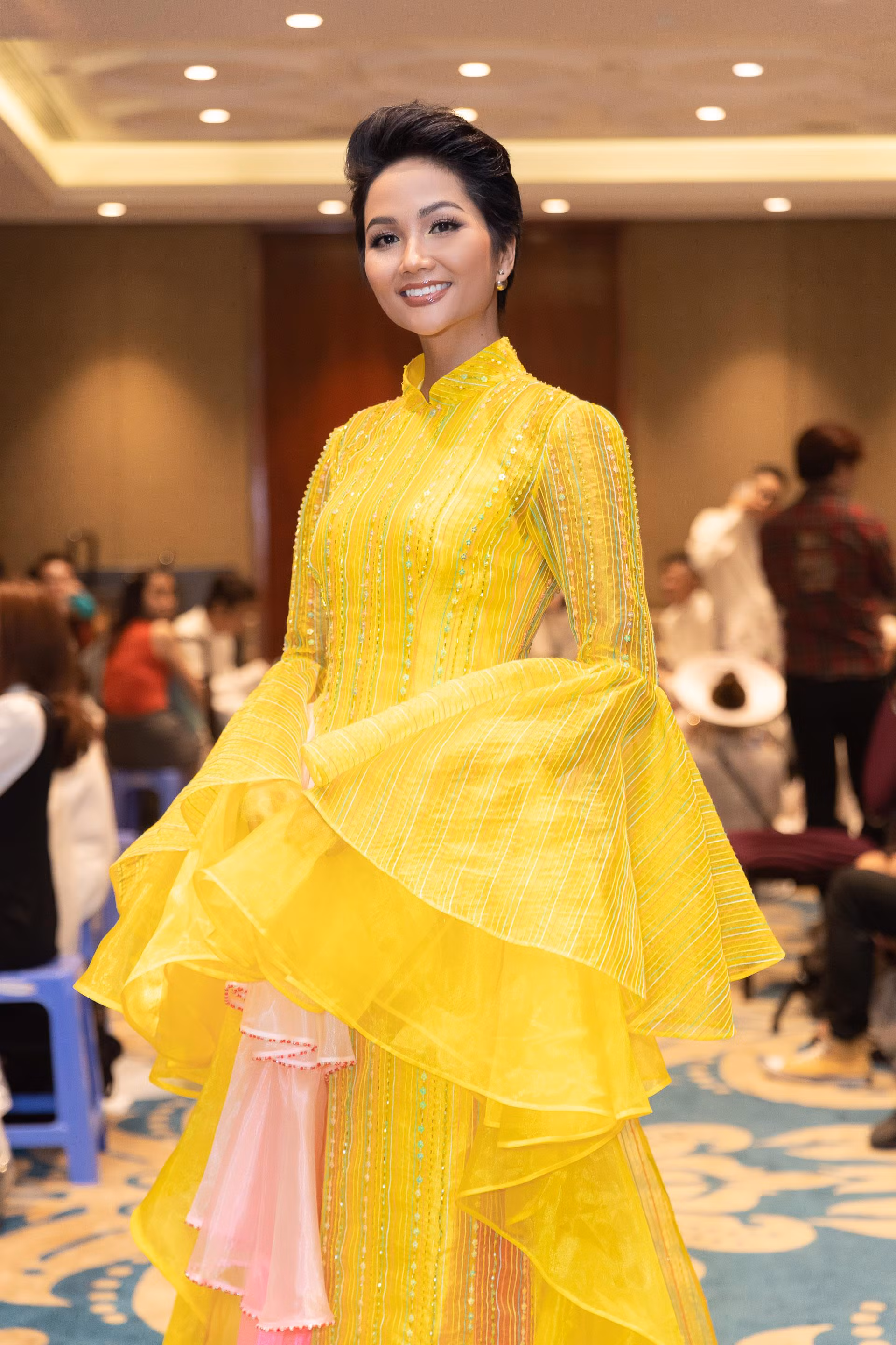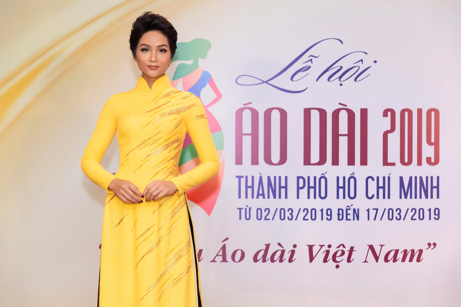 Trong tà áo dài vàng đơn giản của KINZU Phạm Sĩ Toàn kết hợp cùng quần đen đậm chất Sài Gòn xưa, hoa hậu H’Hen Niê gây chú ý cho người đi đường khi quyết định tự chạy xe máy đến chương trình bế mạc Lễ hội Áo dài TP.HCM 2019 mà không phải là ngồi xe hơi riêng như thường lệ. Cô bật mí bản thân rất thích mặc áo dài đi trên phố vào buổi chiều, là dịp để cô ngắm đường phố, vừa chủ động hơn trong di chuyển.