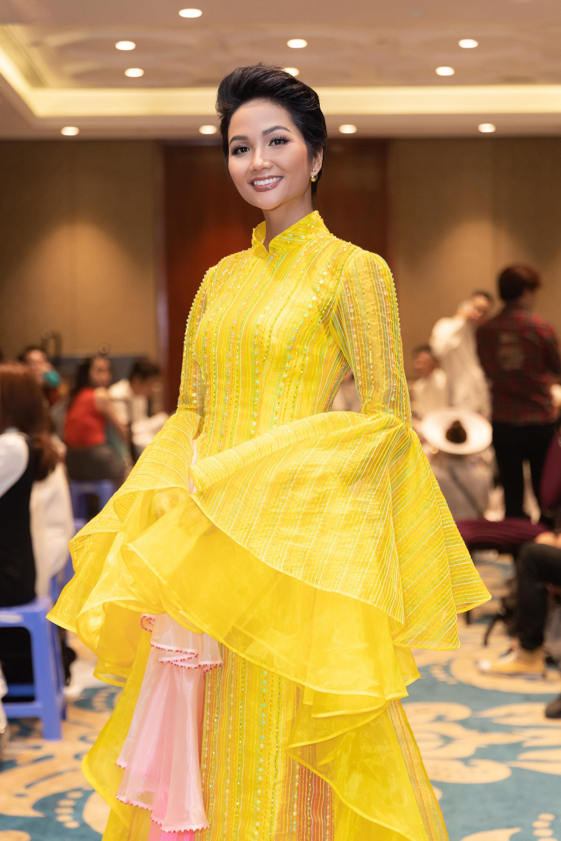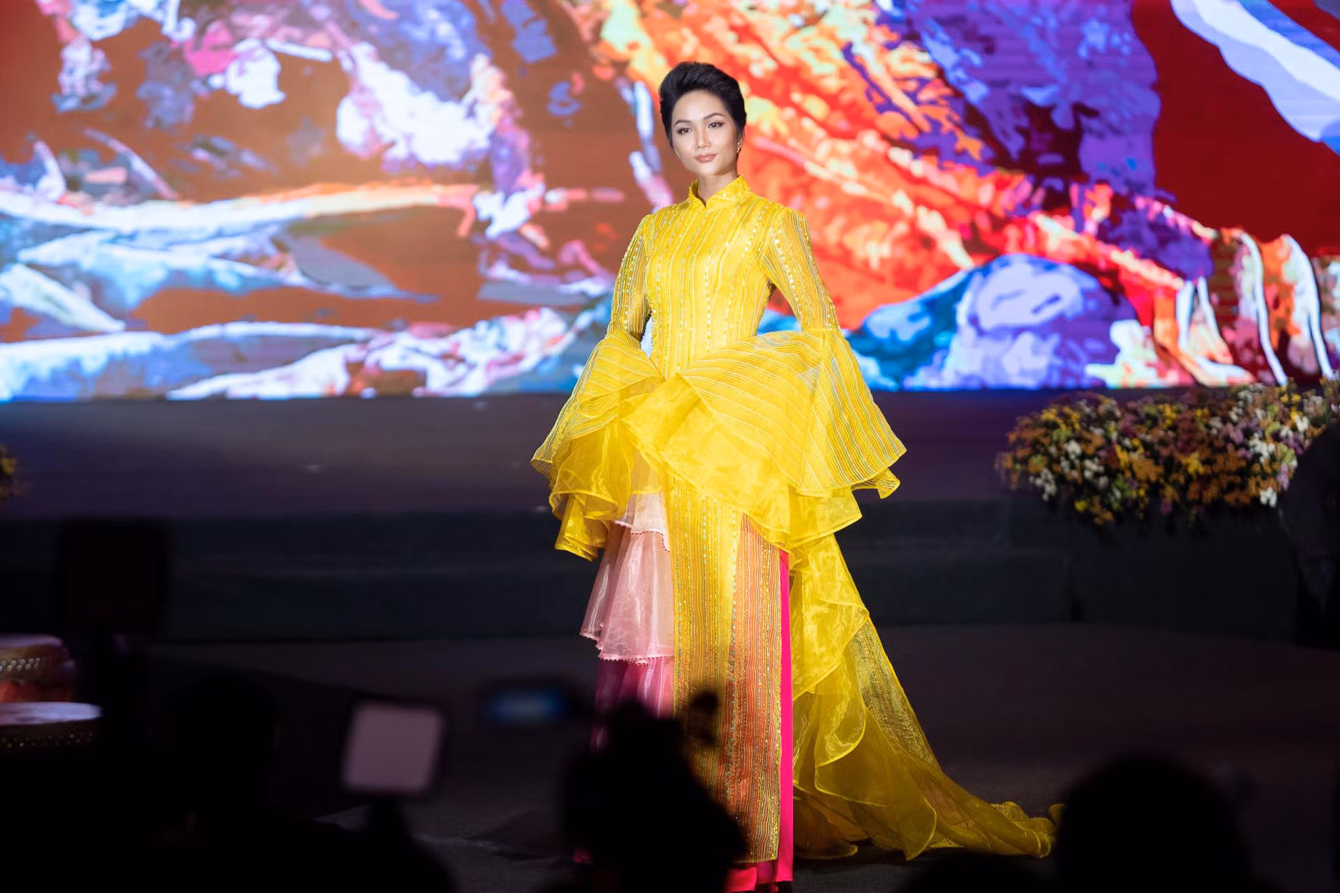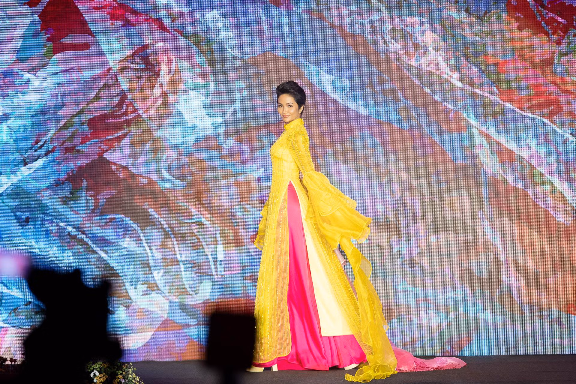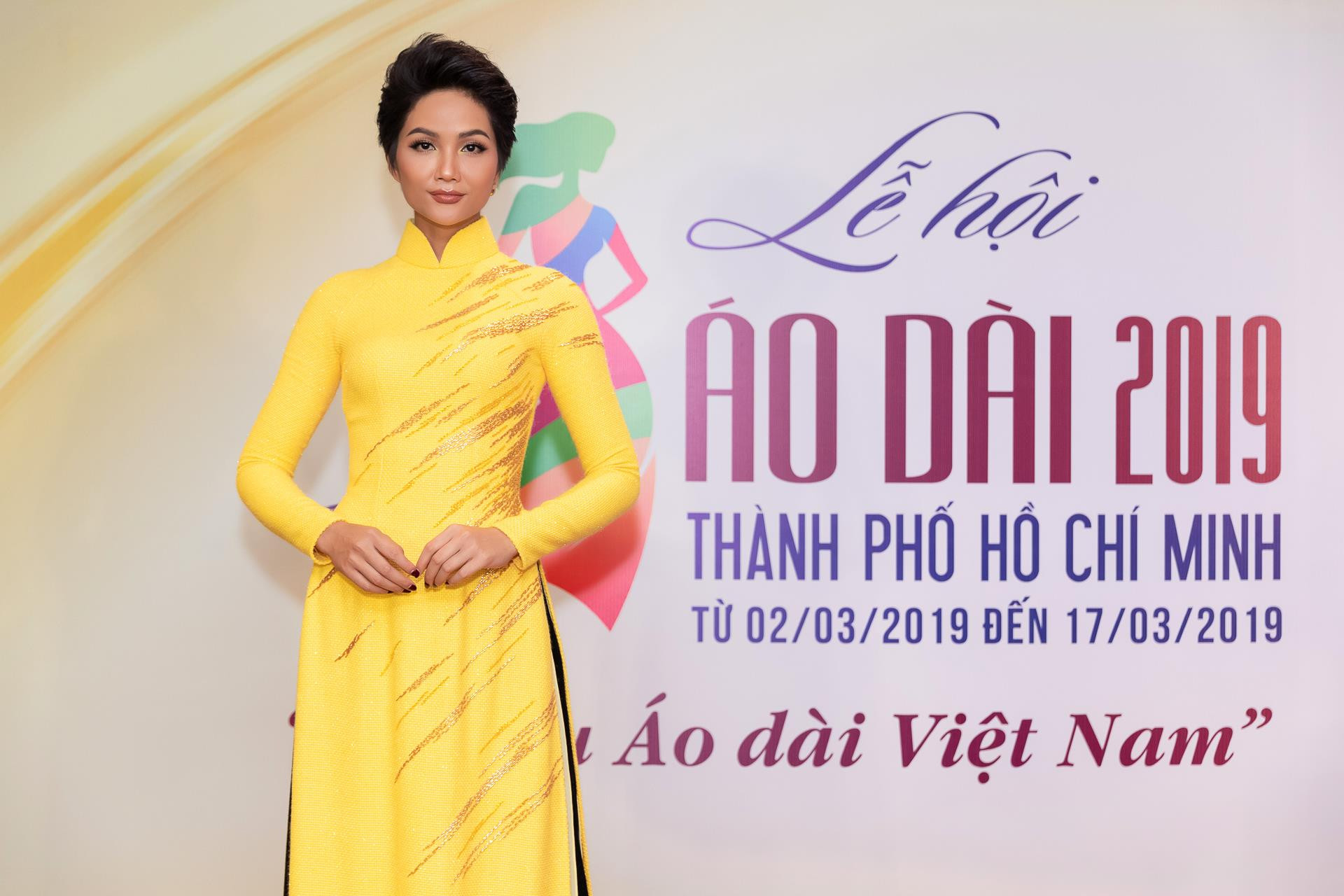 Trong tà áo dài vàng đơn giản của KINZU Phạm Sĩ Toàn kết hợp cùng quần đen đậm chất Sài Gòn xưa, hoa hậu H’Hen Niê gây chú ý cho người đi đường khi quyết định tự chạy xe máy đến chương trình bế mạc Lễ hội Áo dài TP.HCM 2019 mà không phải là ngồi xe hơi riêng như thường lệ. Cô bật mí bản thân rất thích mặc áo dài đi trên phố vào buổi chiều, là dịp để cô ngắm đường phố, vừa chủ động hơn trong di chuyển.