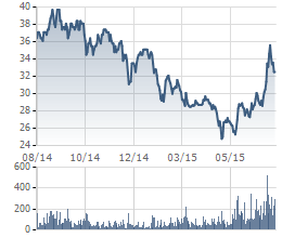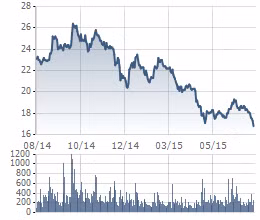 Cổ phiếu HPG từng giảm tới 40% trong giai đoạn từ tháng 9/2014 đến tháng 5/2015 trước khi tăng mạnh trở lại trong 2 tháng vừa qua. Mới đây Hòa Phát đã nâng kế hoạch lợi sau thuế năm 2015 từ 2.300 lên 3.250 tỷ đồng.