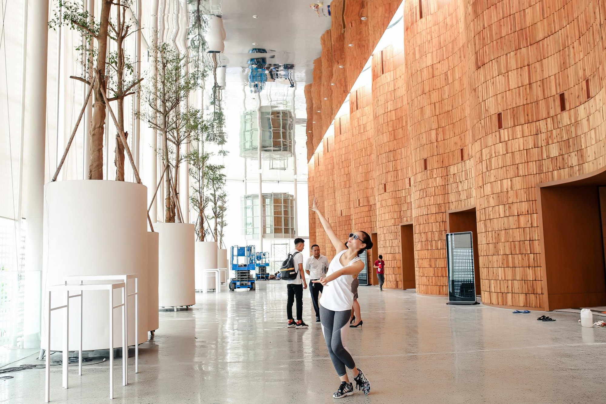 | Thu Minh trực tiếp tham gia khảo sát tiến độ thi công của showcase |