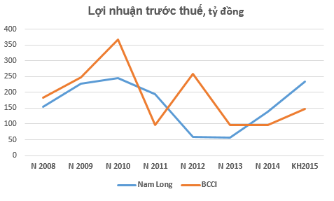 Về lợi nhuận, mặc dù BCCI hầu như có mức lợi nhuận trước thuế cao hơn Nam Long nhờ việc chuyển nhượng dự án ở những năm thị trường bất động sản khó khăn và nguồn thu ổn định từ khu công nghiệp. Nhưng nếu chỉ xét về lĩnh vực kinh doanh nhà/đất ở, Nam Long có lợi thế hơn hẳn trong phát triển dự án và bán hàng.