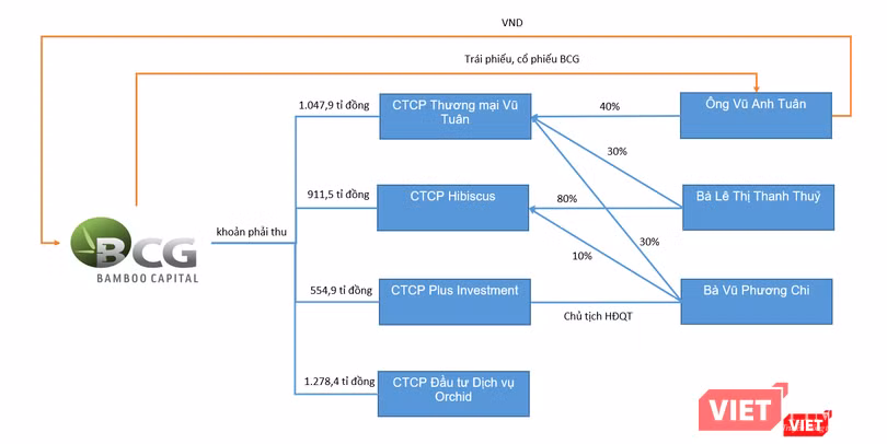 Lưu ý rằng, Orchid, Plus Investment, Helios và Hibiscus – tính đến cuối năm 2021 - đều là những pháp nhân có số dư khoản phải thu lớn đối với BCG, lên tới 2.865 tỉ đồng. Đó là chưa kể các khoản trả trước cho người bán lên tới 681 tỉ đồng giữa BCG và Vũ Tuân, Plus Investment.