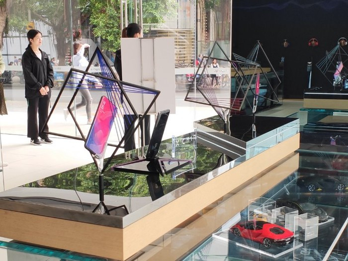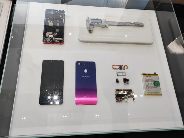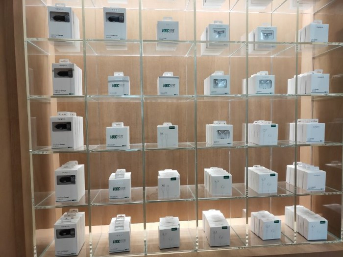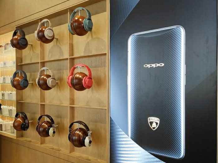 Xen kẽ các kệ trưng bày smartphone là những tai nghe cao cấp do Oppo sản xuất, bên cạnh đó hãng còn trưng bày cấu tạo của một chiếc smartphone để người dùng hình dung. Cũng tại các kệ này người dùng sẽ được chiêm ngưỡng các mô hình hãng xe Lamborghini, một đối tác của Oppo trong việc kết hợp sản xuất điện thoại