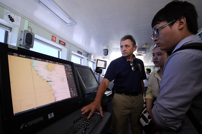 Thủy thủ đoàn giới thiệu về hệ thống radar trên khoang lái.