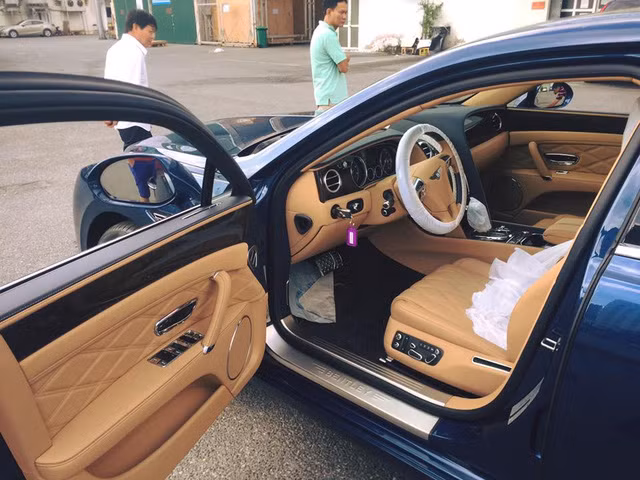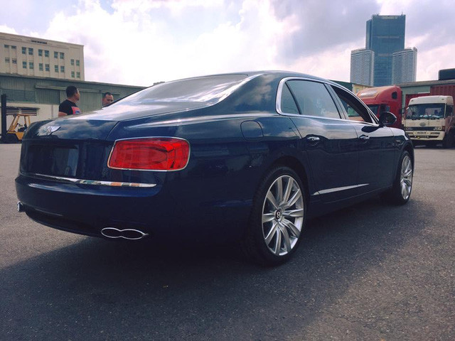 So với những chiếc Flying Spur V8 xuất hiện trước đó, chiếc xe này có ngoại thất màu xanh dương độc nhất Việt Nam.