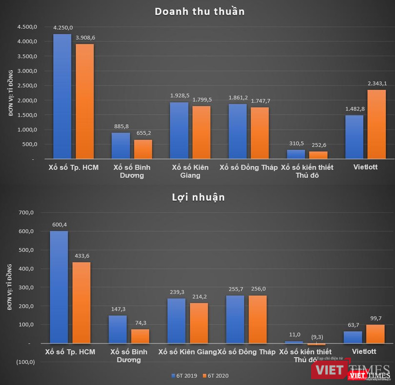 Trong đó, Công ty TNHH MTV Xổ số kiến thiết Tp. HCM ghi nhận doanh thu từ kinh doanh xổ số 6 tháng đầu năm 2020 đạt 3.908 tỉ đồng, giảm 8% so với cùng kỳ năm trước. Nguồn doanh thu chính suy giảm, công ty này báo lãi sau thuế 433,6 tỉ đồng, giảm tới 28% so với cùng kỳ năm 2019.