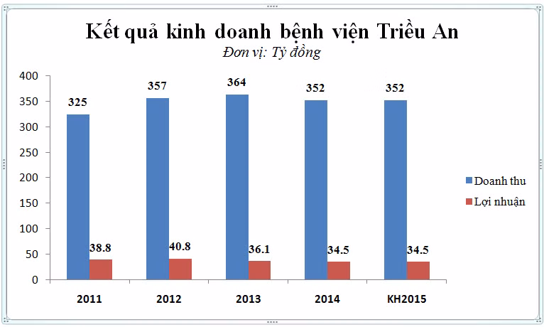 Năm 2015, bệnh viện đặt mục tiêu doanh thu 352,025 tỷ đồng và lợi nhuận sau thuế đạt 34,5 tỷ đồng – đúng bằng kết quả thực hiện năm 2014, cổ tức dự kiến là 6%.