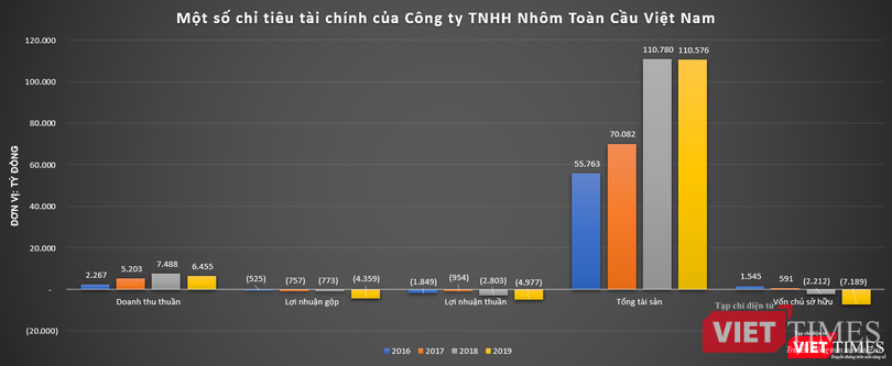 Trái ngược với PTL, Nhôm Toàn Cầu Việt Nam trong 4 năm gần nhất liên tục kinh doanh dưới giá vốn, tổng cộng các khoản lỗ thuần lên tới 10.581,7 tỉ đồng, tương đương khoảng nửa tỉ USD.