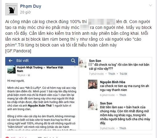 Thậm chí, trong cơn nóng giận vì bị khóa tài khoản thì chính D.Mr.Luffy còn nói rằng nếu cần, anh sẵn sàng lên tận trụ sở NPH GoPlay ngoài Hà Nội để chứng minh trình độ chơi Warface của bản thân, vừa để chứng minh sự trong sạch của mình, vừa để đòi lại tài khoản Warface đã bị khóa.