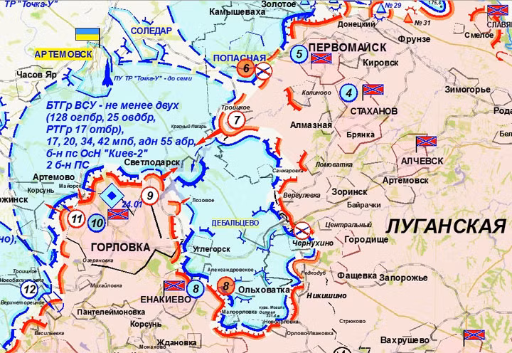 Theo những thông tin cuối cùng, 85% Debaltsevo đã hoàn toàn nằm trong tay của quân đội Novorossia. Lực lượng dân quân Cộng hòa nhân dân Donetsk và Cộng hòa nhân dân Lugansk kiểm soát hầu hết các thành phố Debaltseve, theo báo cáo hôm nay của Bộ Quốc phòng DNR. các lực lượng sức mạnh Ukraine kiểm soát chỉ một phần phía tây của thành phố.