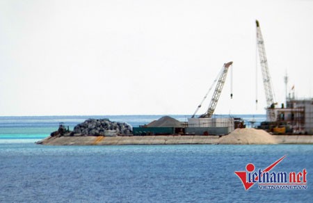 Hình ảnh cải tạo trái phép của TQ tại bãi đá Huy Gơ. (Ảnh: Huy Phong)